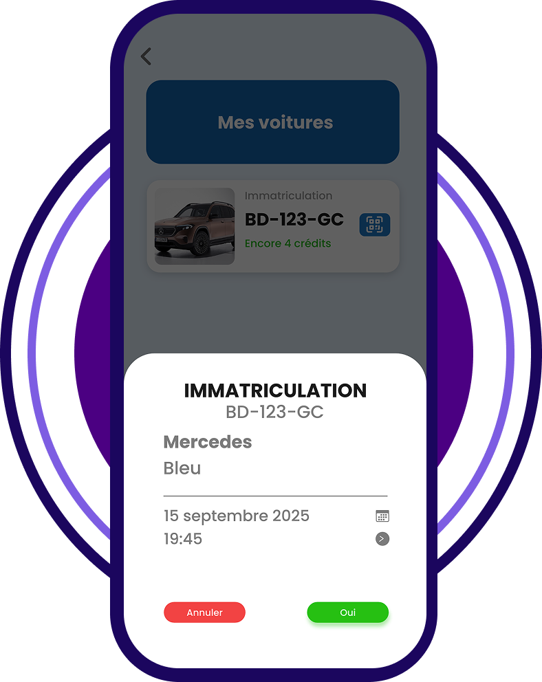 Je renseigne les informations sur mon véhicule. Cela permet de me reconnaître et de faciliter mon passage.